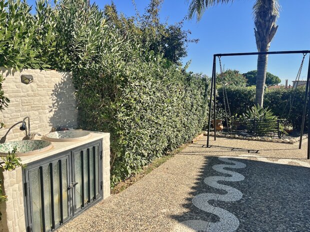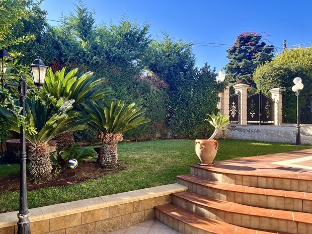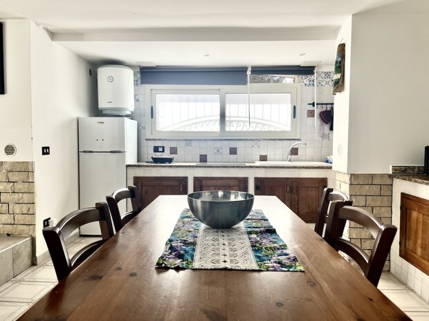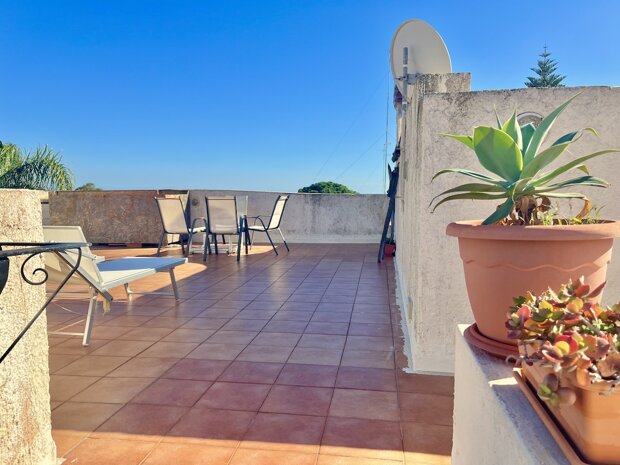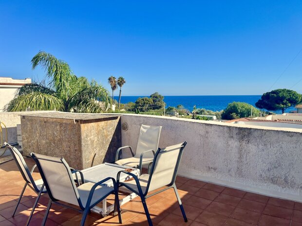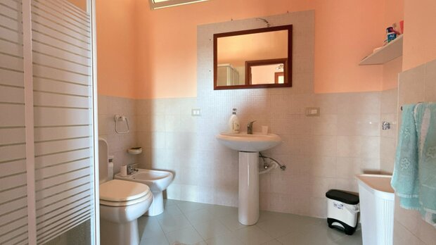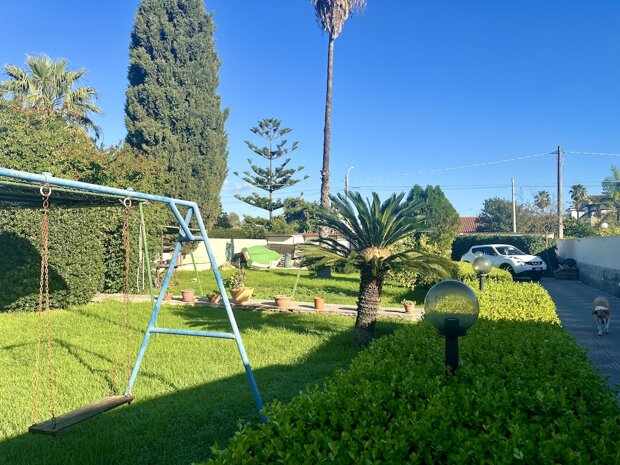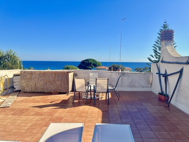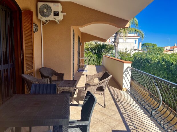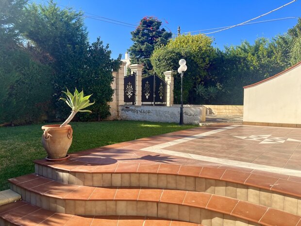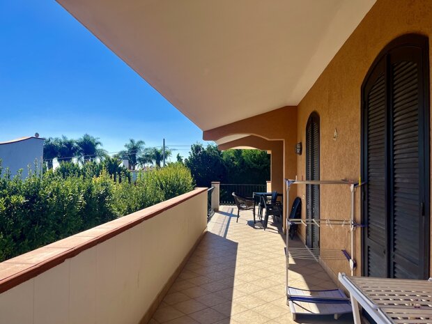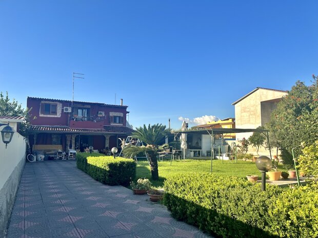 Esternamente l'immobile è ben curato e rifinito nei dettagli con pavimentazione a tappeto, scala che porta al terrazzo dove è possibile apprezzare una bellissima vista mare, verande e piccoli angoli di verde dove è possibile vivere l'esterno oltre a area barbecue e area giochi. Infine, l'ingresso alla villa è mediante 2 cancelli carrabili indipendenti. La villa è pronta da abitare immediatamente o da utilizzare a Casa vacanza o entrambe le possibilità visto i 2 appartamenti indipendenti.