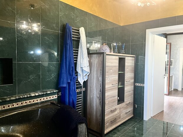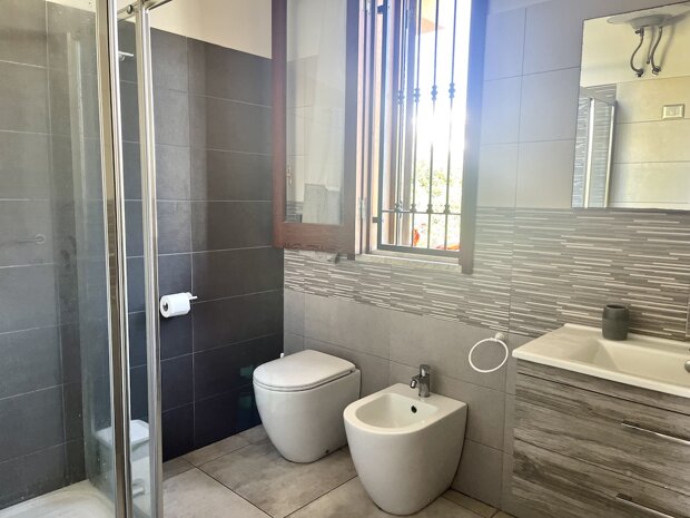 - Piano 1°, avente una superficie totale di mq 70, composto da cucina abitabile con affaccio su un terrazzino con vista sul giardino, due camere da letto di cuci una con bagno in camera, e altro bagno;