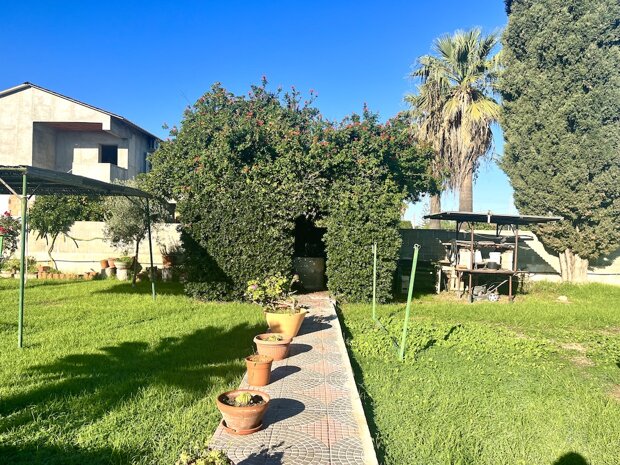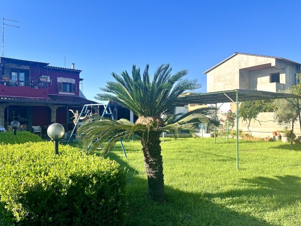 In zona Tivoli e più precisamente in Traversa Papeo, vendesi, villa di 87 MQ circa su terreno di 2000 MQ munito di Alberi totalmente irrigati da trivella propria. Internamente si compone da: piccolo salotto, ampia cucina, ripostiglio, cameretta, camera da letto e bagno. Ampia Possibilità di parcheggio. L'immobile è inoltre dotato di dependance adibita ad area forno.
