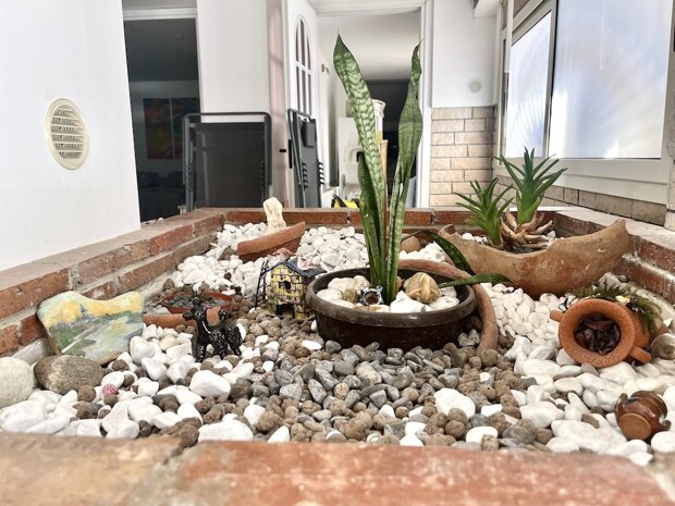 Esternamente l'immobile è composto da un ingresso mediante cancello grande dove è possibile parcheggiare diverse auto, una veranda di ampia metratura ed un giardino con prato e piante ornamentali ben curato. È presente un locale deposito utile per organizzare ulteriori spazi di servizio.